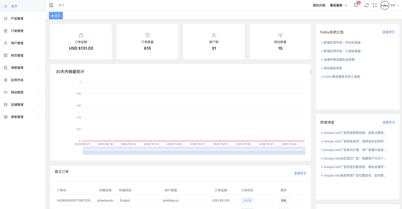 Fulinx是一个为跨境电商中小卖家开发的跨境电商独立站系统,目前分为单机版和SAAS版本,跨境电商卖家可以快速且低成本的创建跨境电商独立站。