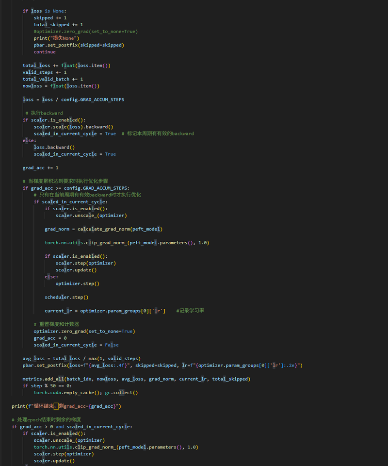 利用gc.collect()和torch.cuda.empty_cache()主动管理内存,防止在资源有限的单卡环境下出现OOM。