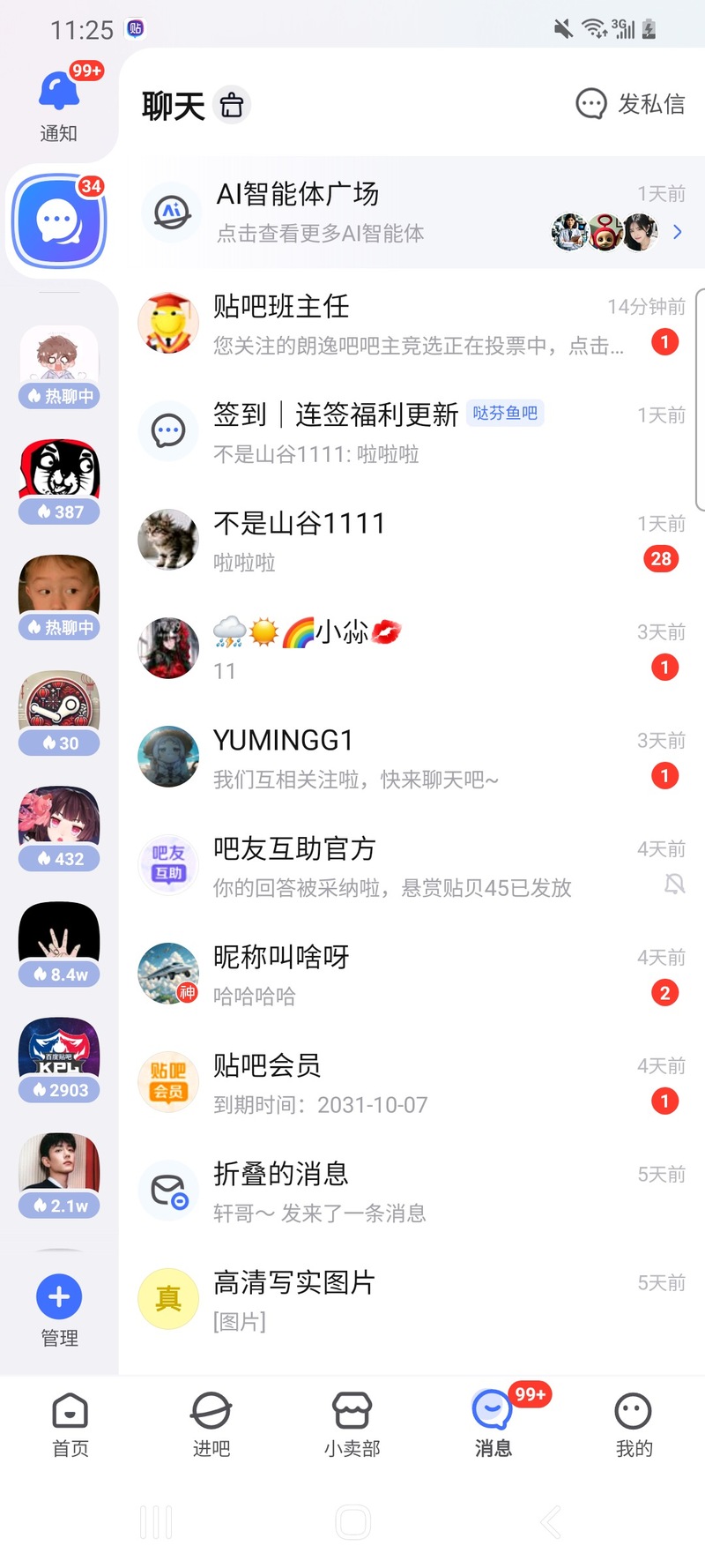 1、加入的吧群聊会展示在消息界面的左侧