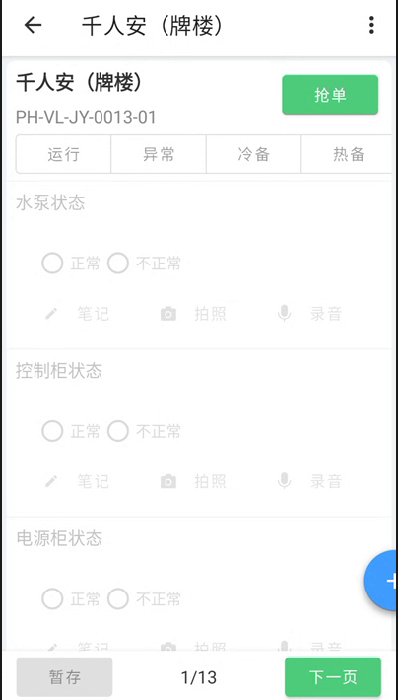 1.独立开发巡检任务模块,支持用户按设备、时间或任务流程启动巡检,界面动态加载任务信息与巡检项;