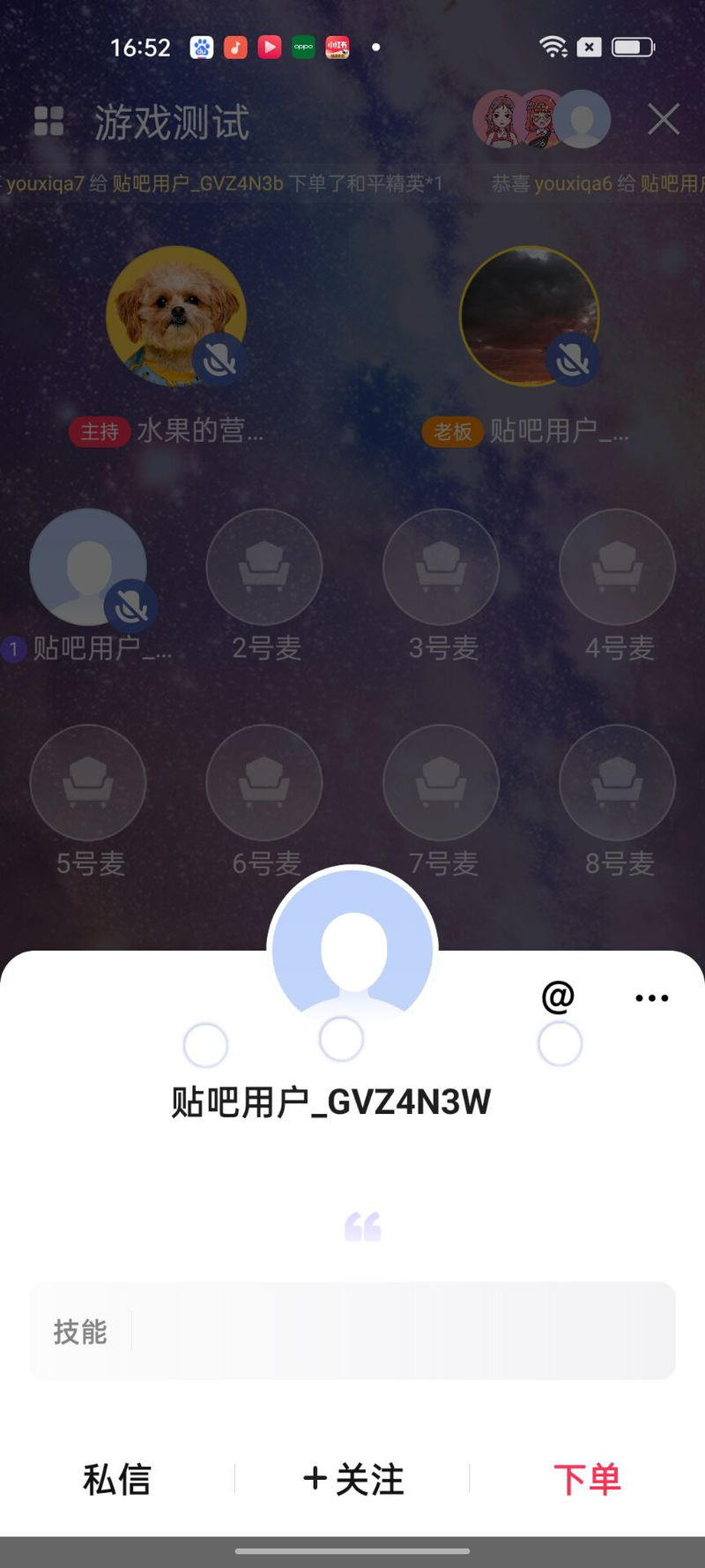 在首页可以对感兴趣的陪玩进行下单,或者进入语音房上麦下单或接单