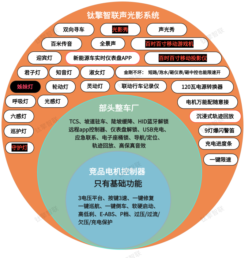 电机控制器除了传统功能外,还集成了120W的12V电源转换器,车灯驱动控制电路,座桶锁控制驱动电路。