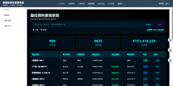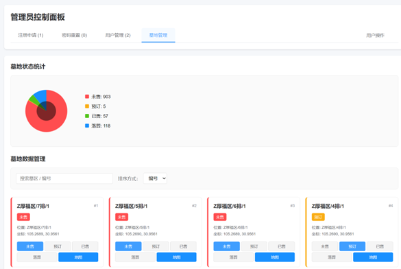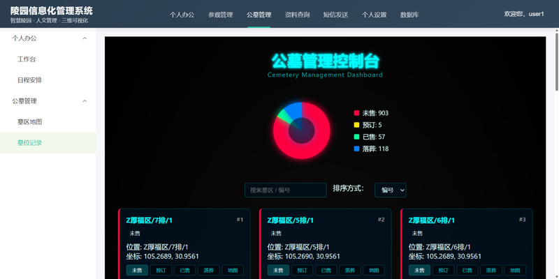 软件集成办公系统和可视化系统,支持任务计划排表,墓位数据与状态更新等等。