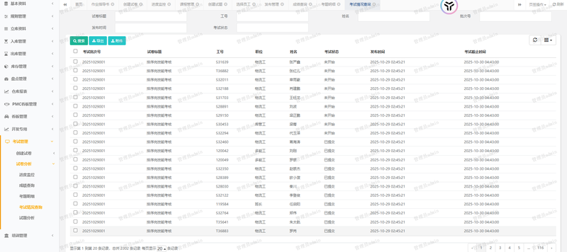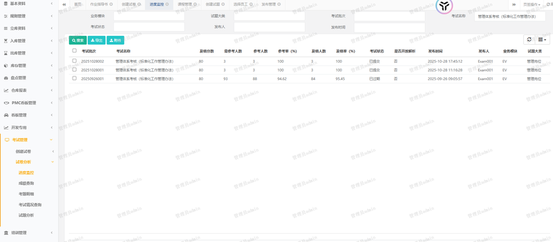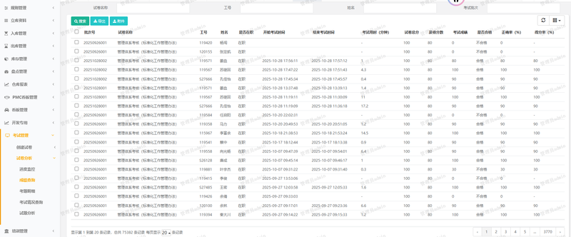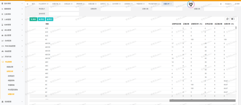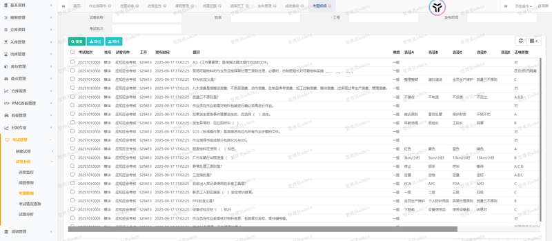 有完整的逻辑,快速的阅卷打分处理,错题分析,正确率,参考率,选择员工、补考等功能。