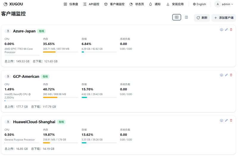 XUGOU 是一个基于 CloudFlare 的轻量化系统监控平台,提供系统监控和状态页面功能。