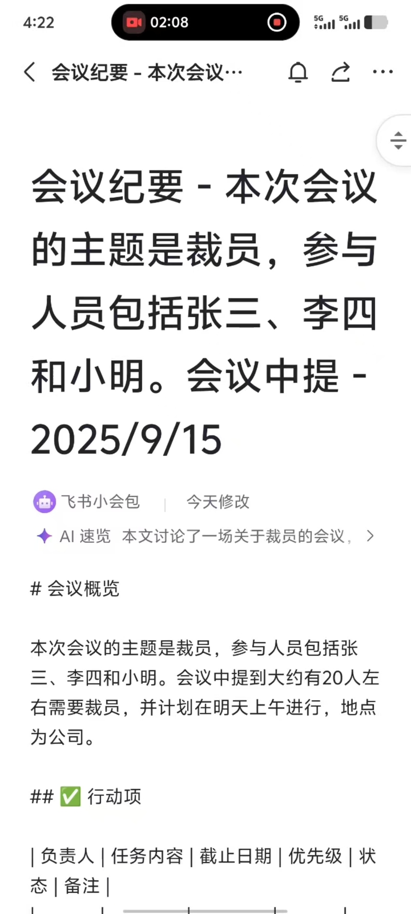 - ✅ 会议结束后,纪要整理耗时20-30分钟