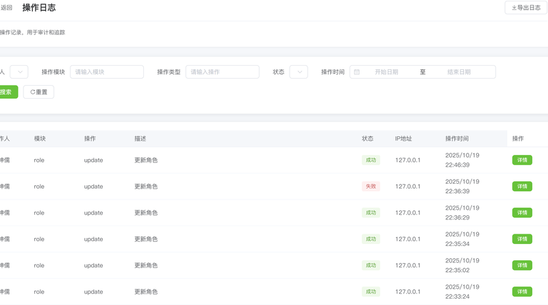 - 操作日志: 记录所有敏感操作,支持审计追溯