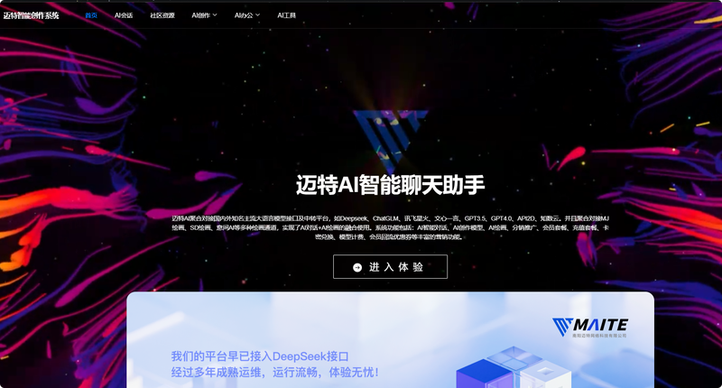迈特AI聚合对接国内外知名主流大语言模型接口及中转平台,如Deepseek、ChatGLM、讯飞星火、文心一言、GPT3.5、GPT4.0、API2D、知数云。并且聚合对接MJ绘画、SD绘画、意间AI等多种绘画通道,实现了AI对话+AI绘画的融合使用。系统功能包括:AI智能对话、AI创作模型、AI绘画、分销推广、会员套餐、充值套餐、卡密兑换、模型计费、会员回流优惠券等丰富的营销功能。