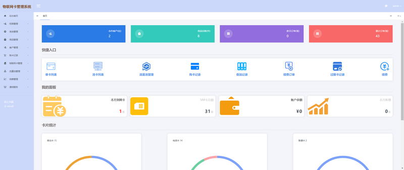 本物联网卡管理系统实现了对物联网卡全生命周期的精细化管控。系统流程涵盖从卡片信息导入、客户销售下单、管理员审核划拨开始,跟踪卡片历经沉默期、测试期直至正式激活的各个状态;同时,系统全面管理流量池配置、每月流量消耗,并能在卡片用量达到套餐阈值时自动执行断网,直至最终的销卡处理。所有环节的操作与状态数据均在系统中有据可查,并通过与物联网卡接口定时同步,确保信息的准确性与实时性。