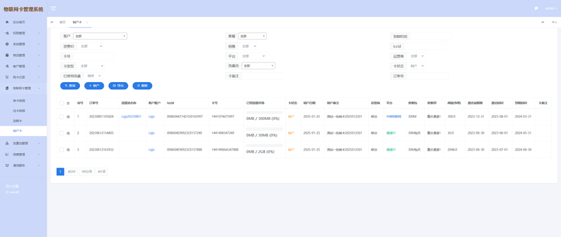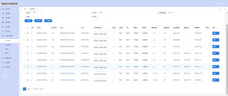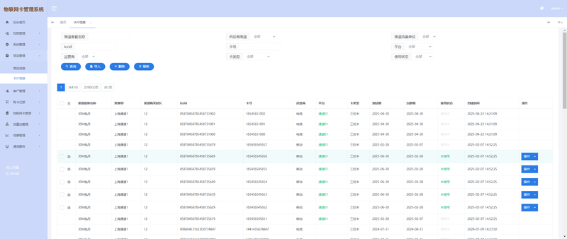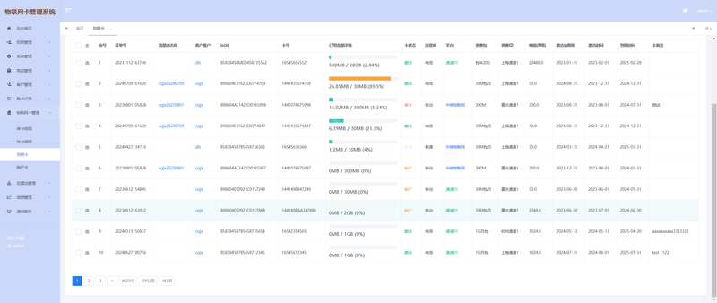 批量操作与高效运维: 对成千上万的物联卡进行批量激活、休眠、续费、注销。