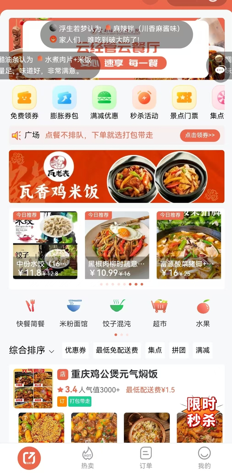 2、 用户点餐功能,店铺浏览搜索、菜品浏览搜索、领券、下单、支付、退款等