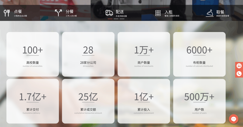 爽提公司为配套自有智能餐柜而打造的软硬件全链路自研系统,对标美团饿了么的校园版智慧食堂系统,包括点餐系统、配送管理、餐柜交付、结算清分四大核心子系统,配套有运营管理、数据分析、商家系统等辅助系统。服务全国近百所高校的点餐与配送交付业务,保障全国数十万用户业务的秒级响应。
