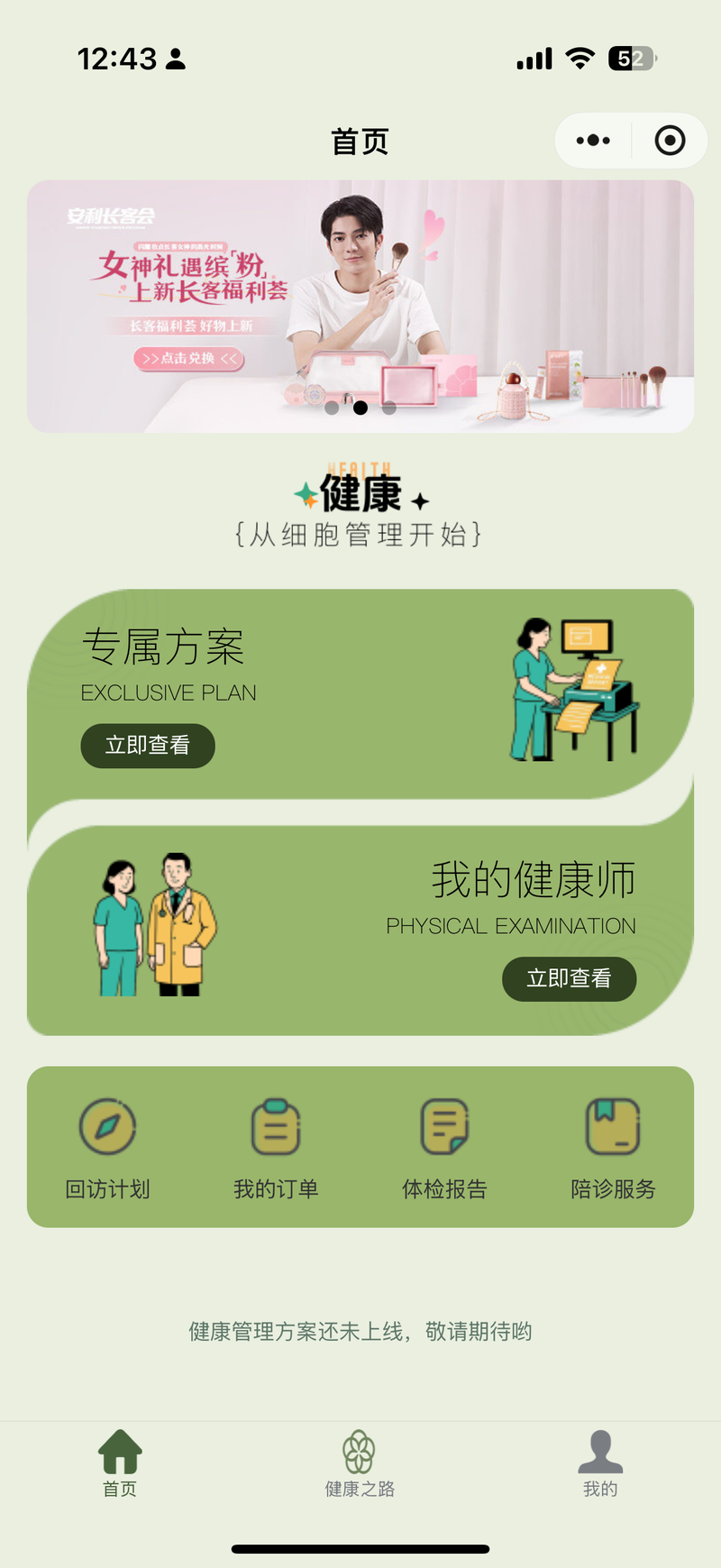 2. 客户端小程序 有健康管理师预览、我的订单、我的卡券、我的体检报告、我的回访管理等