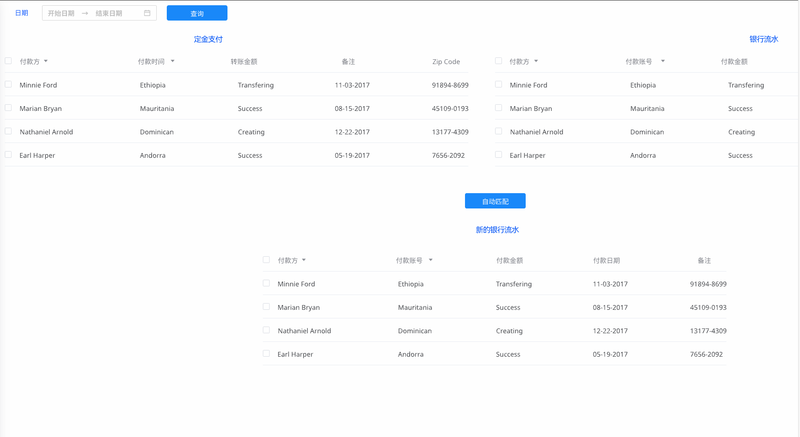 支付流水管理模块:集中管理银行流水,自动识别交易状态。