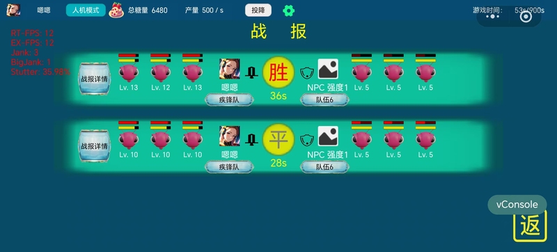 2、当进行到最大游戏时间,所有操作停止,系统自动计算敌我双方占领的糖果产量,产量高的一方获胜,如果产量相等,则是平局。