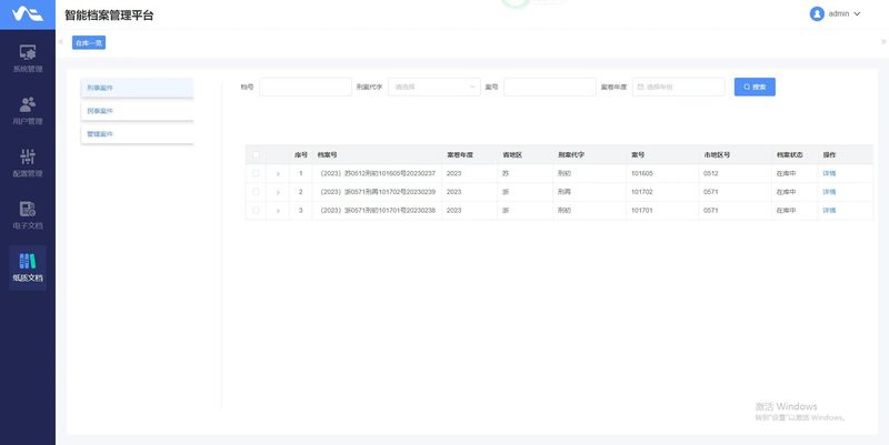 通过线上电子档案管理和线下实体档案管理两部分,实现线上电子档案管理和线下实体档案管理的有机结合。两套系统可以分别独立运行也可以结合运行。线上档案通过扫描仪或者高拍仪或者接口等方式录入电子档案信息,形成电子文书。线下实体档案通过RFID采集贴码绑定,与电子档案形成一对一关系,收纳入库、出库则由AGV自动上下层架。用户可以通过管理平台提供的借阅方式在线预览电子档案,或者让AGV对实体档案进行取还。