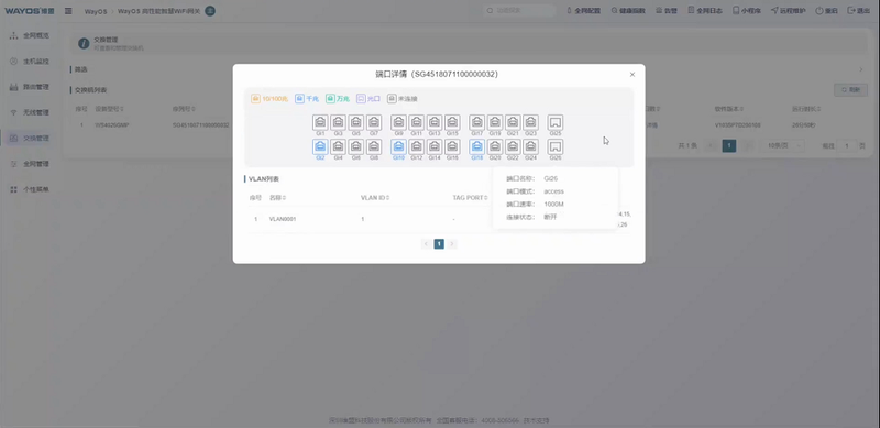 全网管理系统主要功能包含全网概览、全网配置、路由管理、无线管理、交换机管理等等。