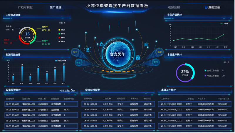 实时监控与可视化看板模块: 为管理层和操作人员提供直观的Web图形化界面。看板能够以数字、仪表盘、趋势曲线、流程图等形式,实时展示设备状态、运行参数、产量、合格率等关键指标。支持自动告警提示,当数据超过阈值时,界面会通过颜色变化、弹窗、声音等方式进行预警。