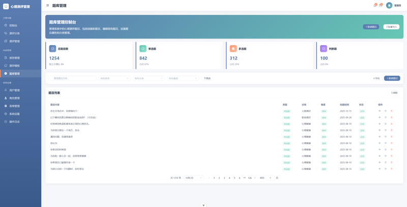 b. 题库管理: 对题目和选项进行增删改查,支持批量导入。