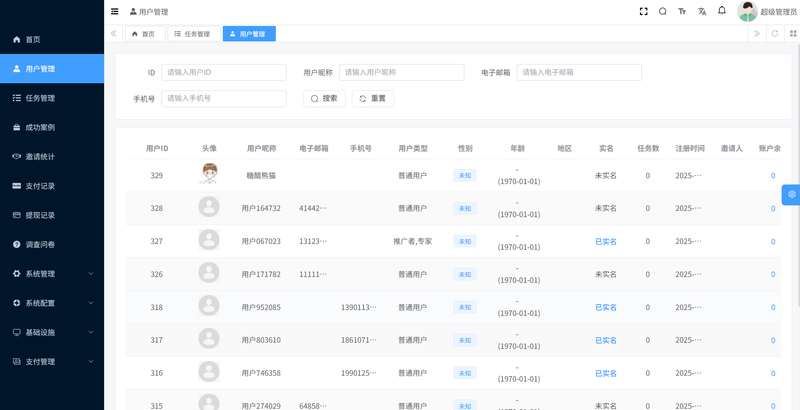 2.任务管理,平台管理人员对任务发布内容进行合规审核;