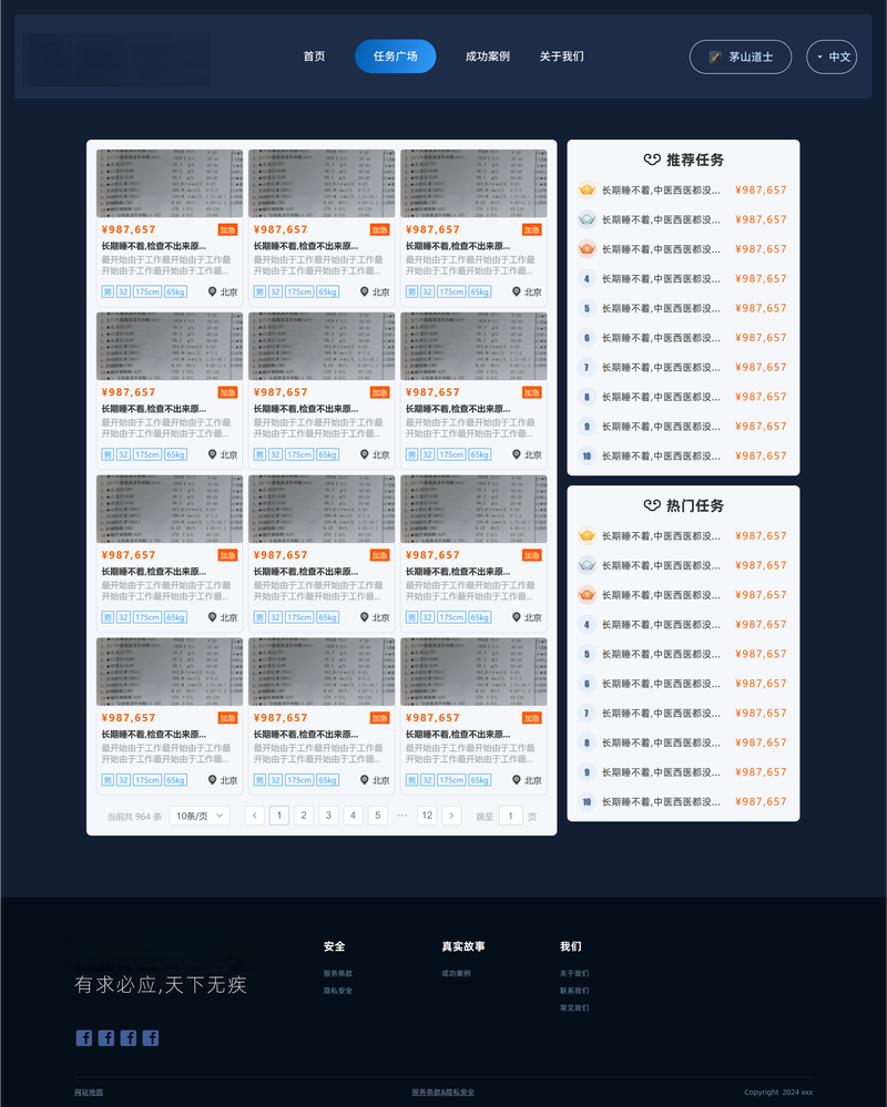 3.任务广场,展示所有悬赏任务,会员用户可以申请接取任务;