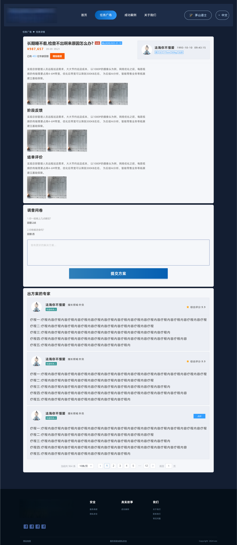 为全球用户提供一个便捷医疗服务平台,拥有专业能力的人士向客户提供健康解决方案,用户可以在平台上发布悬赏任务,描述需要帮助的问题,并支付悬赏金。专家会员可以接单并提供咨询方案。