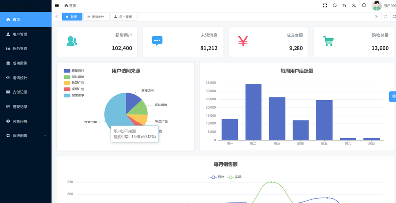 本项目采用Web端+移动端+微信小程序的多端架构,用户可在PC网站和移动设备上完成医疗咨询任务的发布或接收,通过便捷的服务平台,确保任务的支付和佣金结算流程顺畅。并通过管理端后台提供网站会员管理,内容审核,公告发布等运营支撑。
