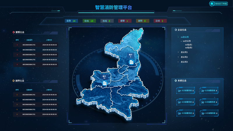 实时监测 实时展示自动报警系统、消防水系统、电气火灾系统、视频监控系统等消防平台对应功能的数据信息