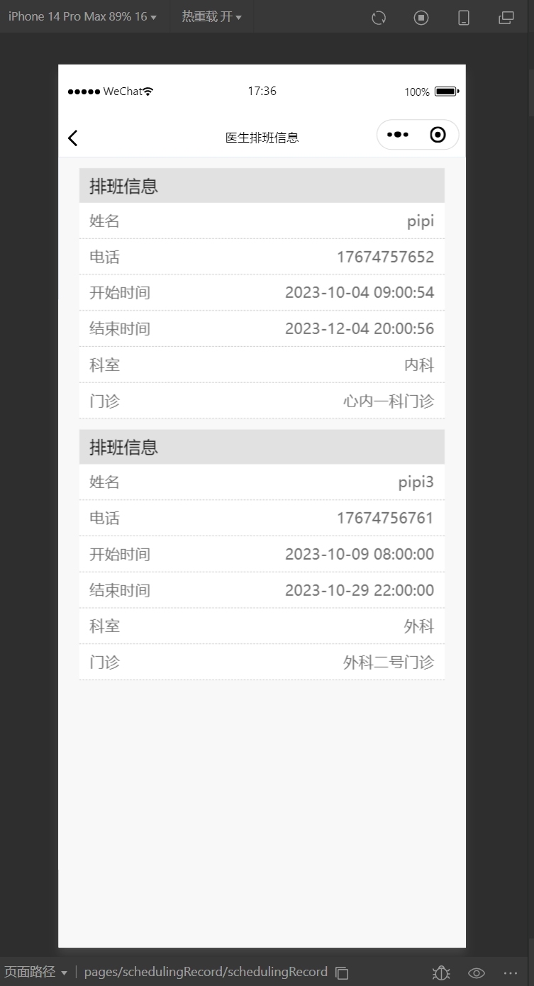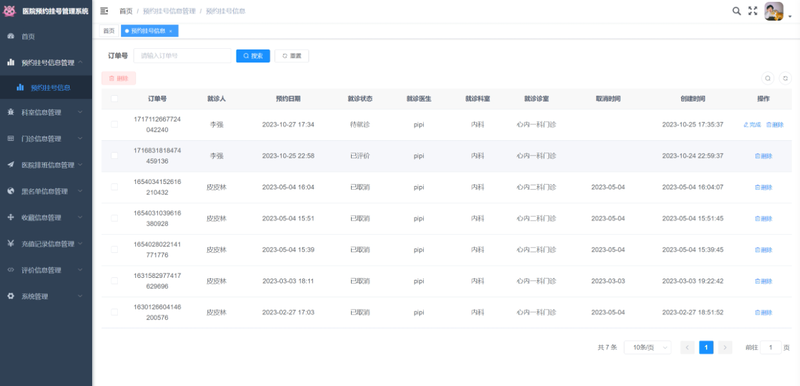 5、用户可以查阅自己的订单情况以及挂号信息。