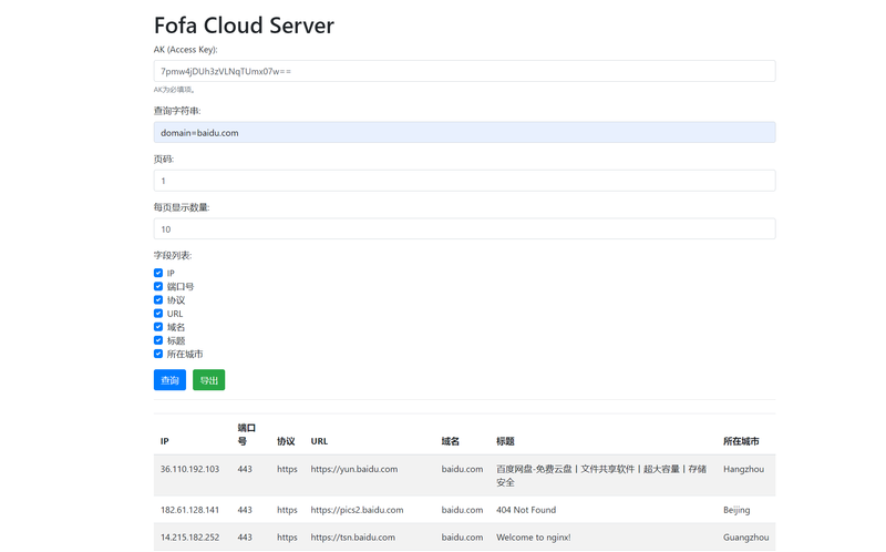 基于对接FOFA资产搜索引擎,支持单账号部署的多人协作查询B/S模式,后端部署后通过前端网页交互查询数据和导出数据,实现单个FOFA会员账号最大化利用,方便收集资产排查漏洞