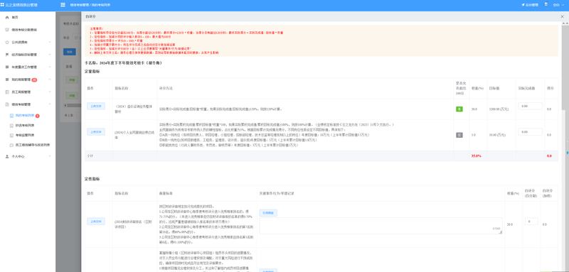 定量指标:如产量、销售额、差错率等,可对接业务系统自动采集数据,设定目标值与评分规则(如线性计分、阶梯计分);
