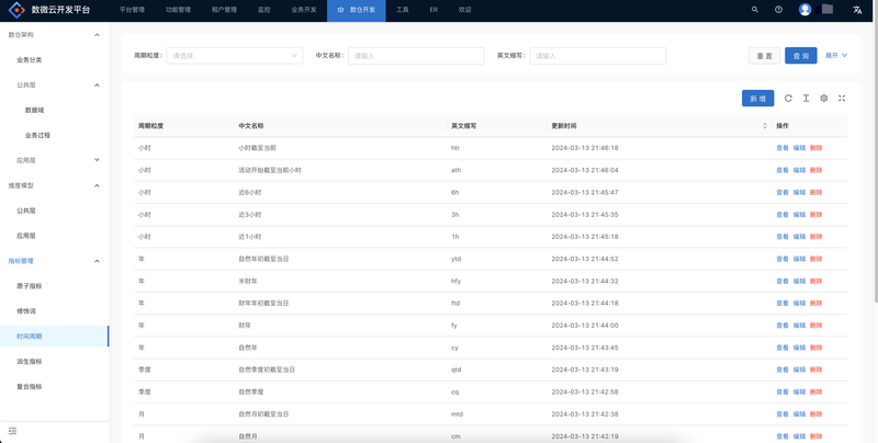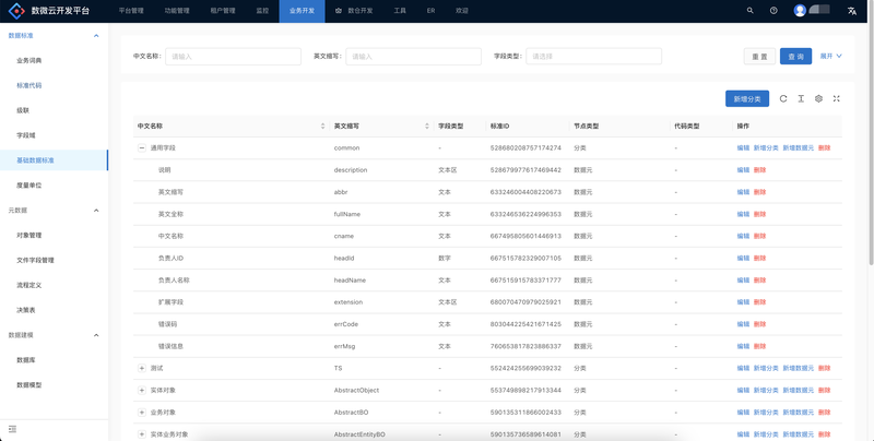 主要功能包括:平台管理、租户管理、数据标准管理、业务对象管理、bpmn流程管理、业务规则管理、页面管理、数据模型管理、维度建模、第三方服务管理等。