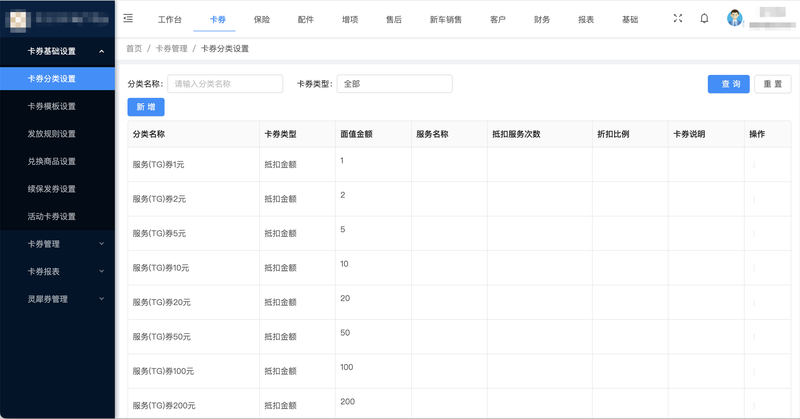1、卡券系统:解决DMS电子卡券功能不足,无法满足线上使用,更无法实现集团化管理;