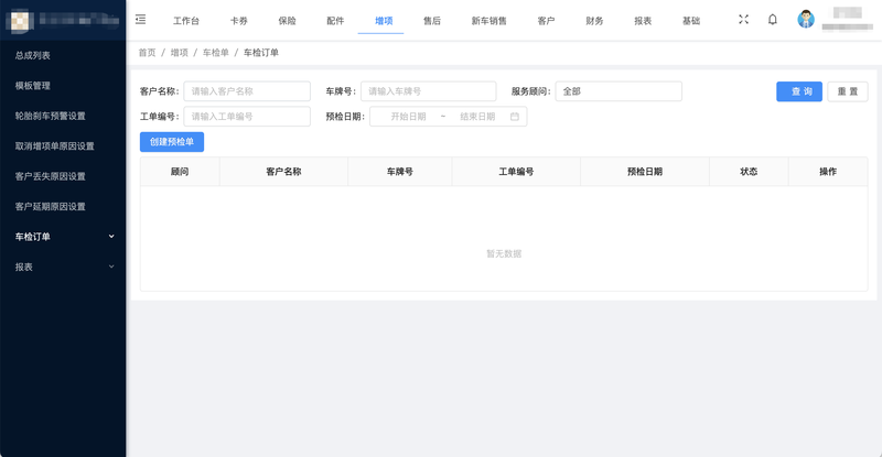3、增项系统:客户进店维护时,根据增项配置检查项目检查车辆,拍照/拍视频上传,检查完成后推送给客户;