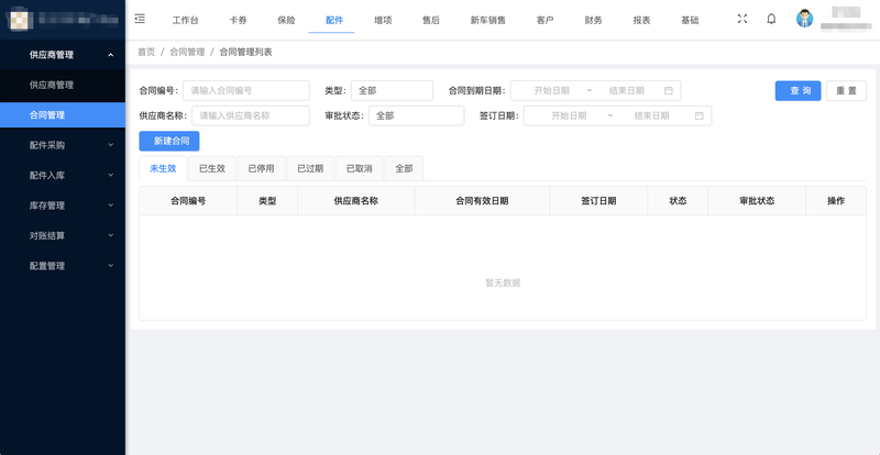 5、配件集采系统:集团内统一供应商,4S店各自采购,集团统一结算;