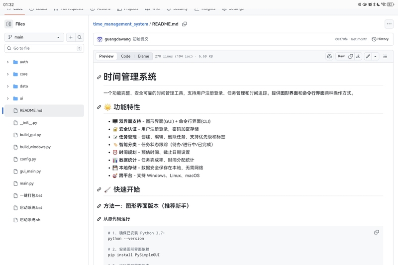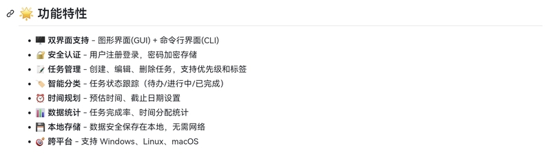 一个功能完整、安全可靠的时间管理工具,支持用户注册登录、任务管理和时间追踪。提供**图形界面**和**命令行界面**两种操作方式。