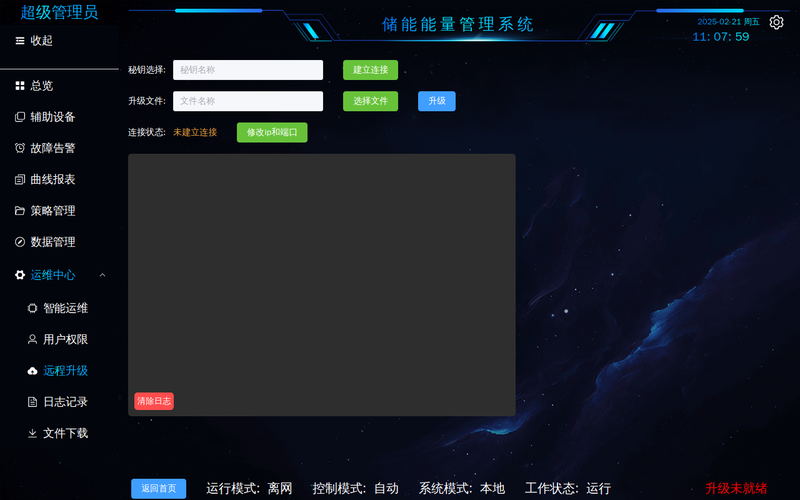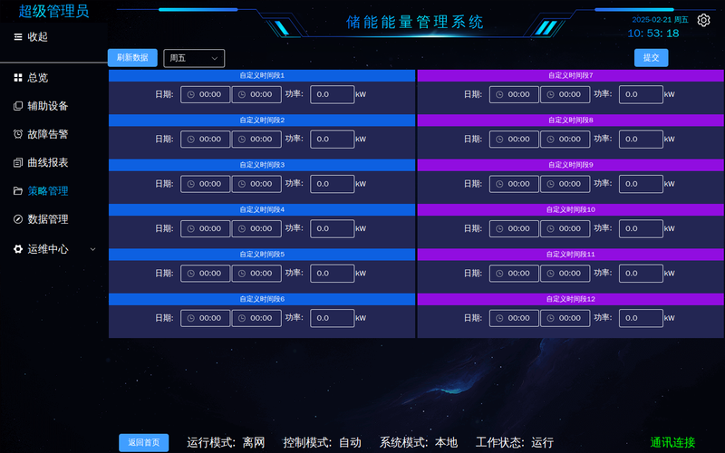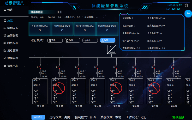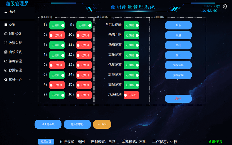 主要的功能有:ems系统控制,dido控制,以太网通讯配置,电池堆、簇信息查看控制,pack信息查看控制,接触器状态,辅助设备(电网,空调,负载等)参数控制,数据实时曲线,设备故障告警处理,电池充放电策略,远程升级,日志查巡,数据文件导出等等