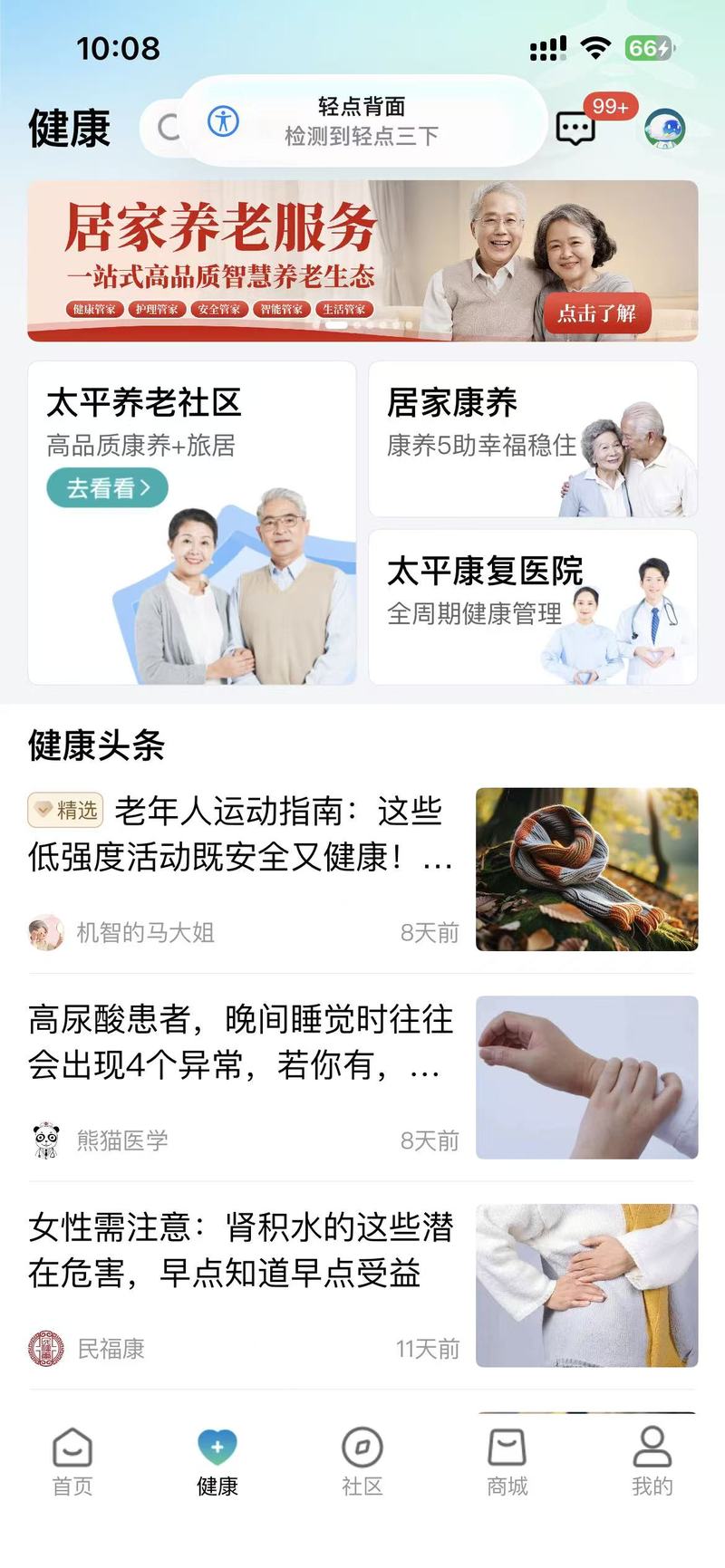 2,app端包含直播、社区、商城、健康等主要核心模块。