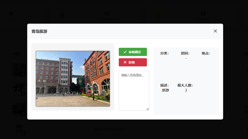 ⚙️ 企业级后台管理:完备的RBAC权限控制(Admin/业务员/审核员),支持活动审核、全局置顶、内容管理及数据统计。