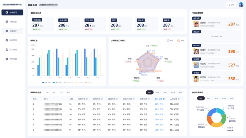 银行分支机构分布广泛,传统业绩统计依赖人工汇总,存在数据滞后、口径不一的问题。管理层难以实时掌握各网点、团队及员工的金融产品销售动态,导致营销策略调整不及时,影响业务增长效率。基于金融行业精细化管理需求,需搭建一套集中式业绩管理平台,实现销售数据实时整合与可视化呈现,支撑科学决策。