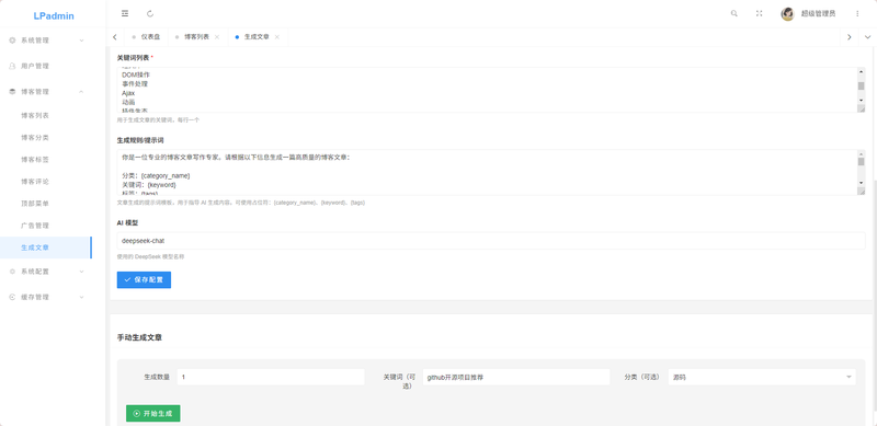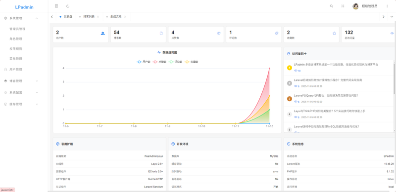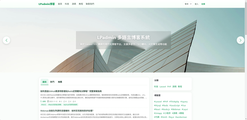 LPadmin 多语言、AI自动发布博客系统是一个功能完整、性能优异的现代化博客平台,支持多语言内容管理、SEO优化、AI自动生成文章、用户中心等高级特性。系统采用 Laravel 10+ 框架开发,前端使用 Blade SSR 渲染,提供完整的后台管理系统和前台展示功能,是推广引流必备利器。