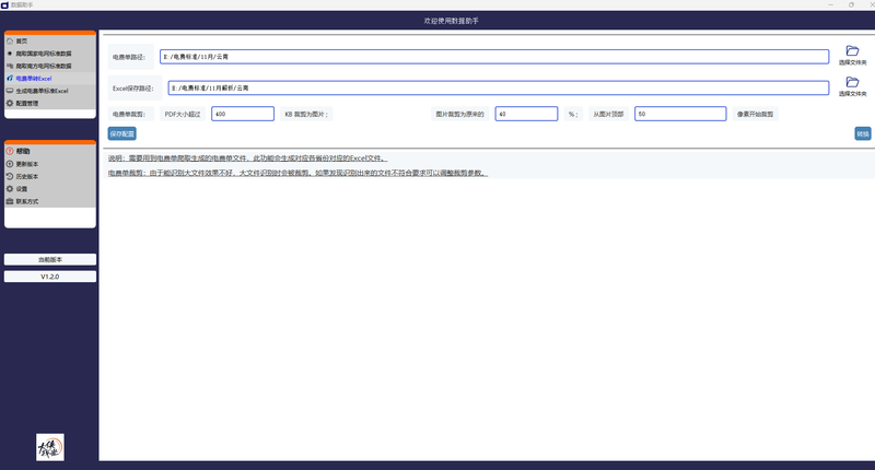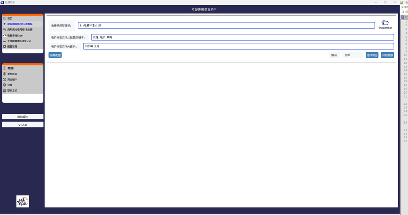 - 主要功能:通过 PyQt5 桌面界面提供多 Tab 的可视化操作,支持拖拽排序、自动补全检索、批量编辑与校验反馈,实现对电费数据解析所需参数的集中配置与快速变更发布。