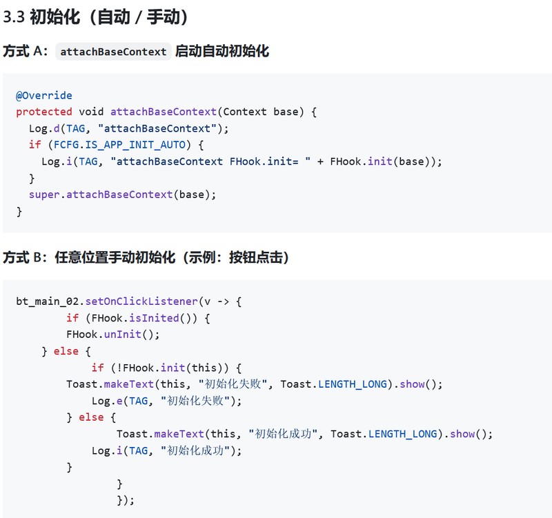 支持 Gradle 依赖(implementation)、源码集成(module/源码拷贝)、以及在合规前提下的应用注入(重打包或动态加载)三种方式,覆盖不同使用场景