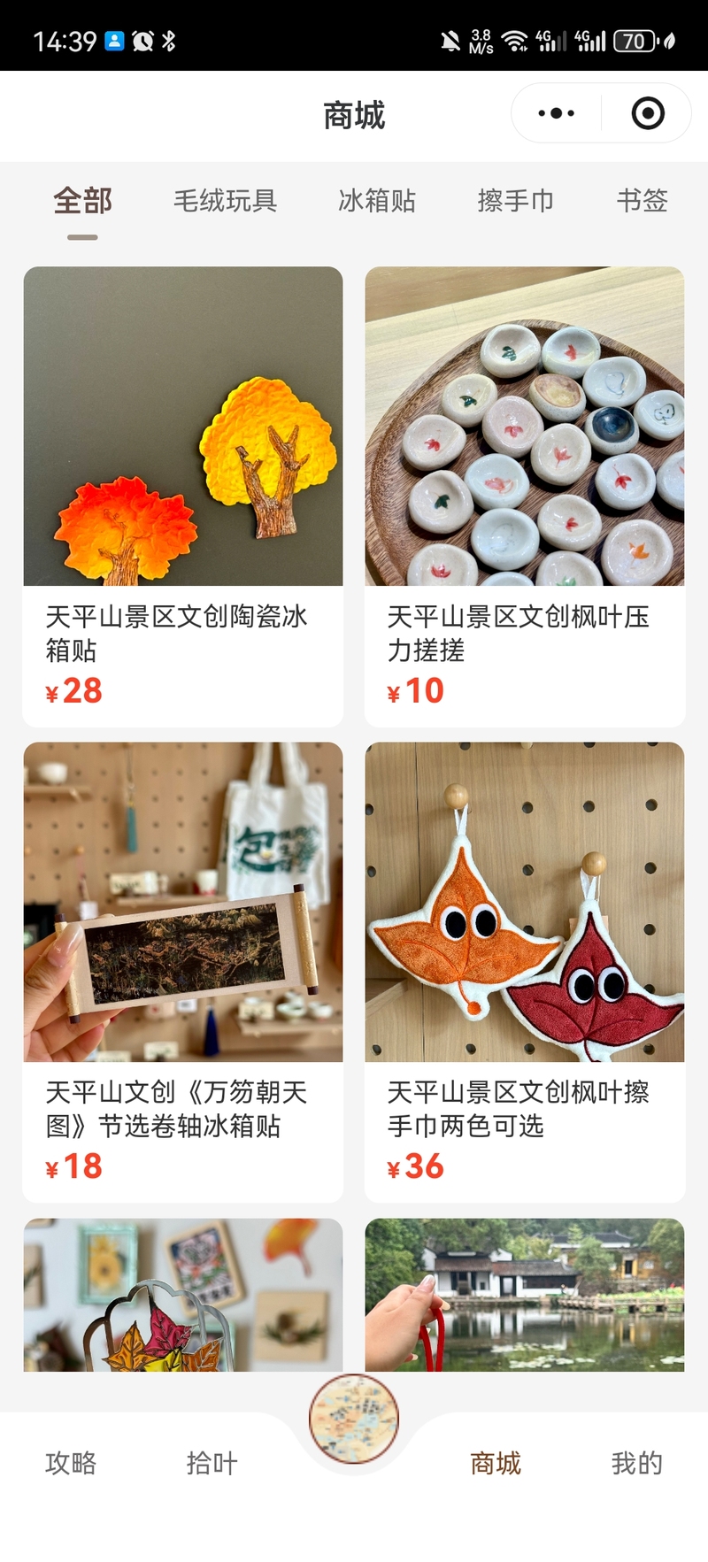 商城:售卖景区玩偶。挂件,与景区的实体店保持同步对接