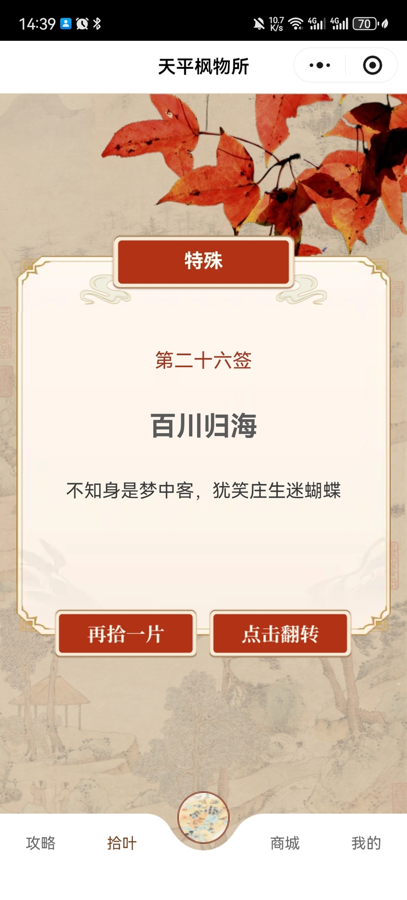 1、拾叶抽签: 采用AI随机推算出运势以及封建迷信的效果