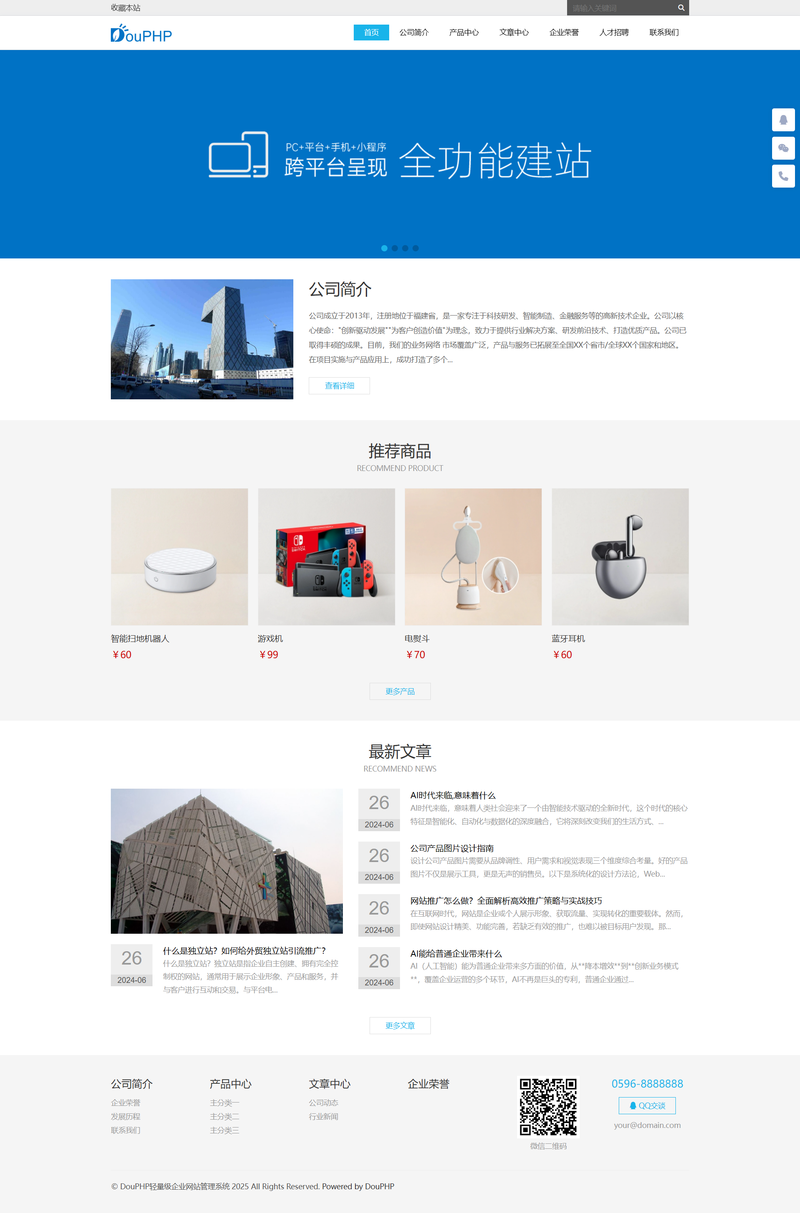 DouPHP模块化企业网站管理系统是一款轻量级企业网站管理系统,基于PHP+MYSQL架构的,包含“手机版”、“公众号管理模块”、“小程序”,可以使用它快速搭建一个企业网站。