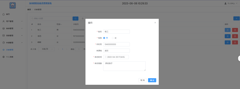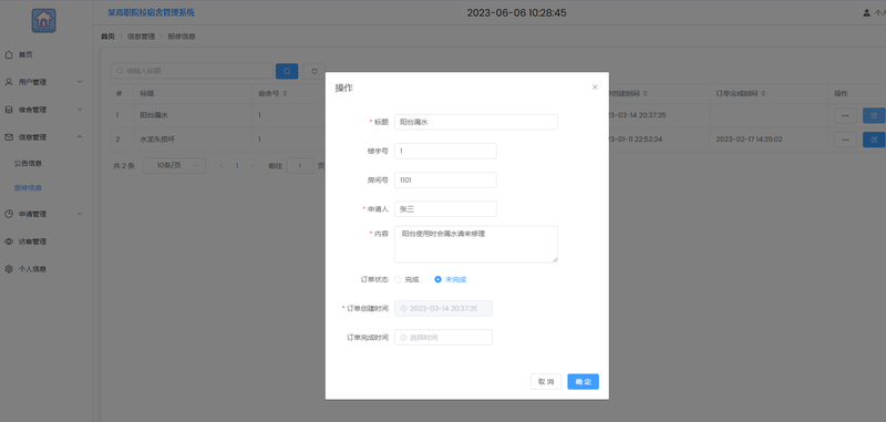 2.行业场景: 在高校环境中,宿管中心需要管理数千甚至上万名学生的住宿信息,处理大量的日常报修、调宿申请和访客登记。该系统为管理员、宿舍管理员和学生三类用户提供了一个统一的协同工作平台,简化流程,实现数据透明化和流程规范化。