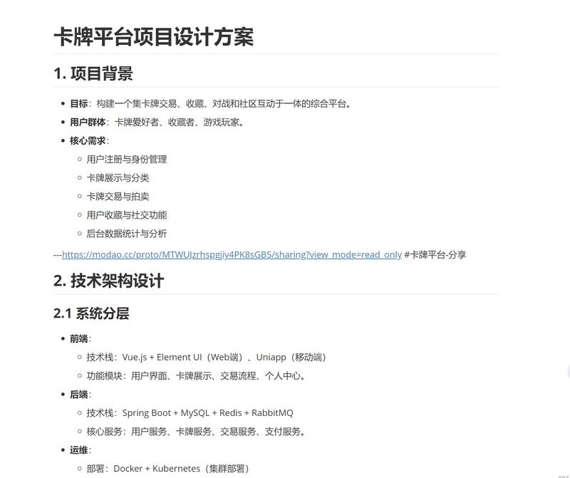 - 需求细化:确定支持的交易模式(一口价/拍卖)、支付方式(微信/支付宝)、卡牌类型(实体/数字)、是否需要物流对接(实体卡用)。