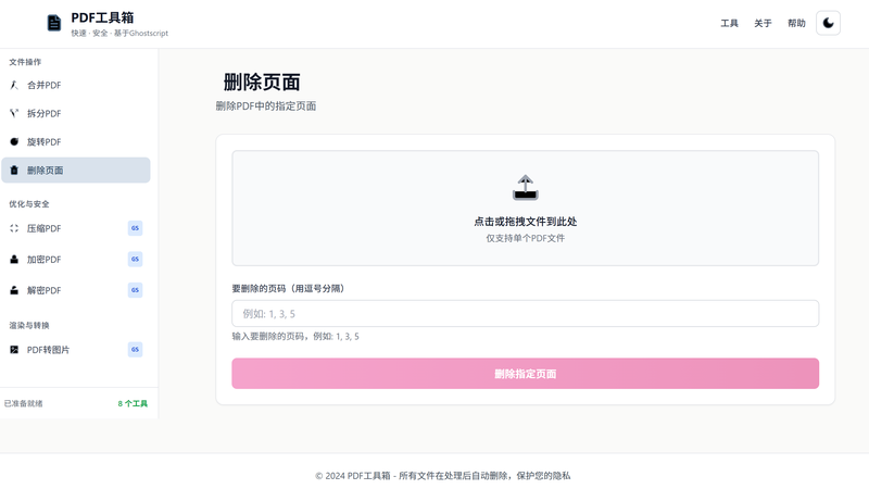 - 🗑️ **删除页面** - 删除PDF中的指定页面