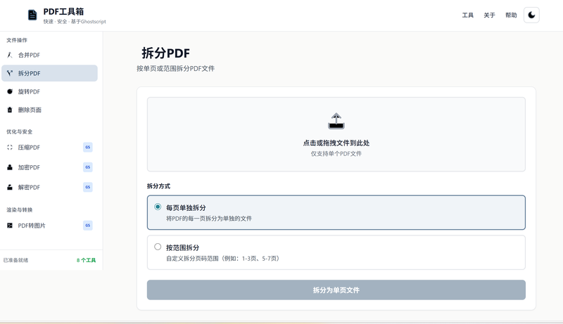 - **范围拆分**(新增):自定义页码范围